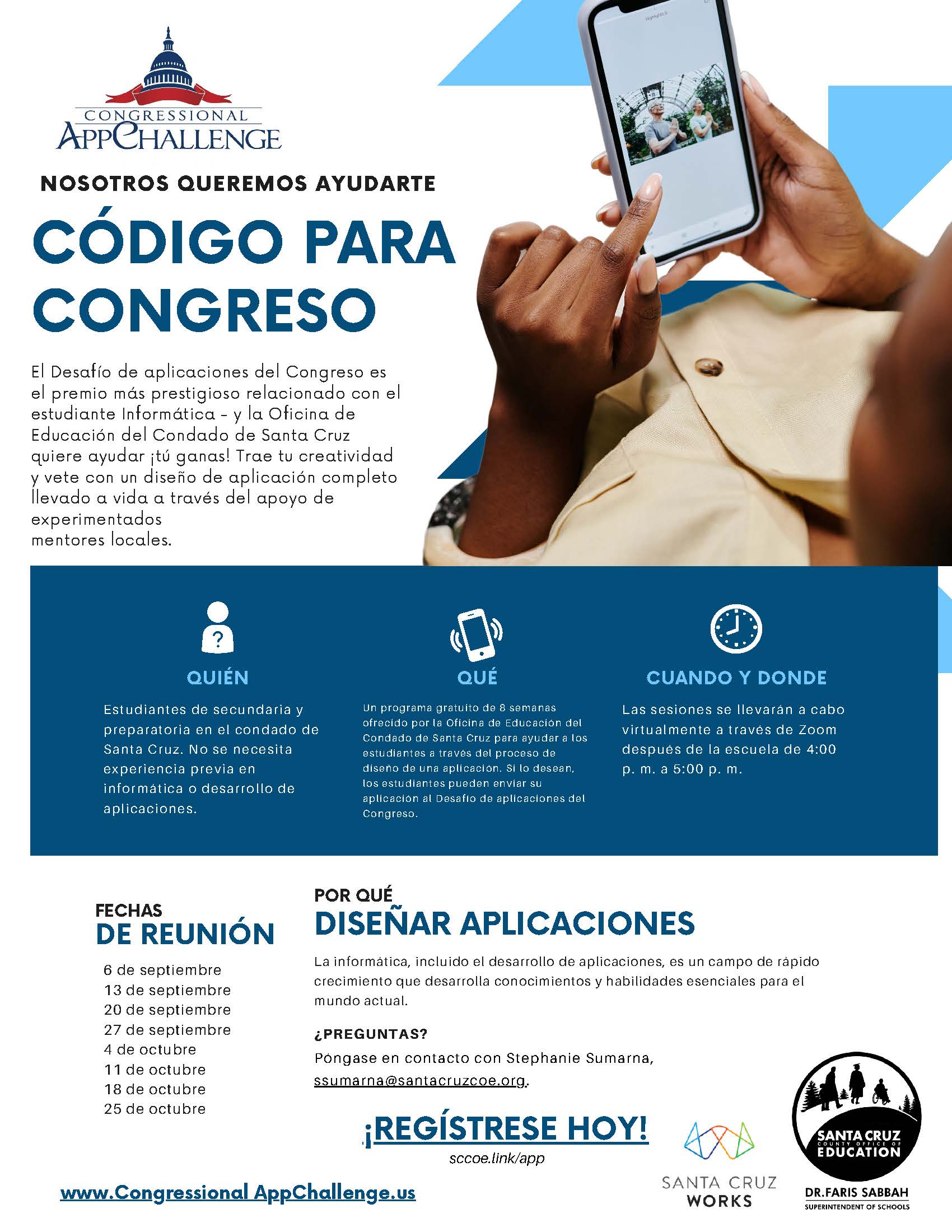The Congressional App Challenge is the most prestigious prize related to student Computer Science – and the Santa Cruz County Office of Education wants to help you win! Bring your creativity and leave with a completed app design brought to life through the support of experienced local mentors. Register here!