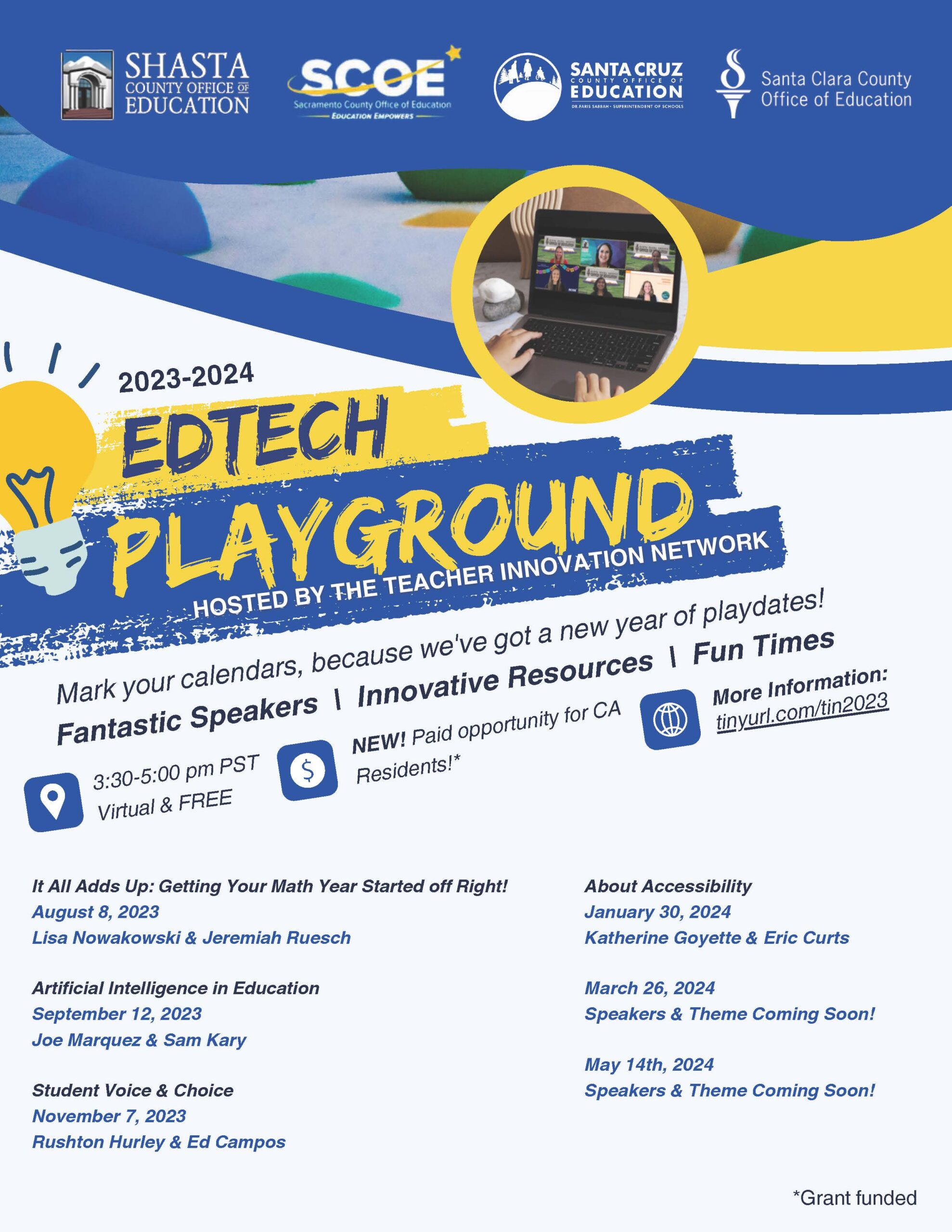 Mark your calendars for a new year of EdTech Playground dates! Come listen to fantastic speakers, innovative resources, and for a chance to discover new EdTech tools for your classroom. To register or for more information, click here.